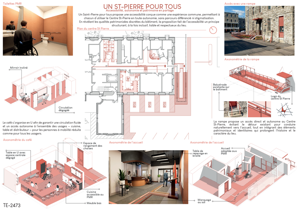 Parmi les points ayant retenu l’attention, le jury souligne que «les parcours sont clairs, les espaces sont dégagés et les choix d’aménagement favorisent une utilisation inclusive, notamment dans le café, où l’absence d’encombrement central permet une plus grande flexibilité pour les gens utilisant des aides à la mobilité.»