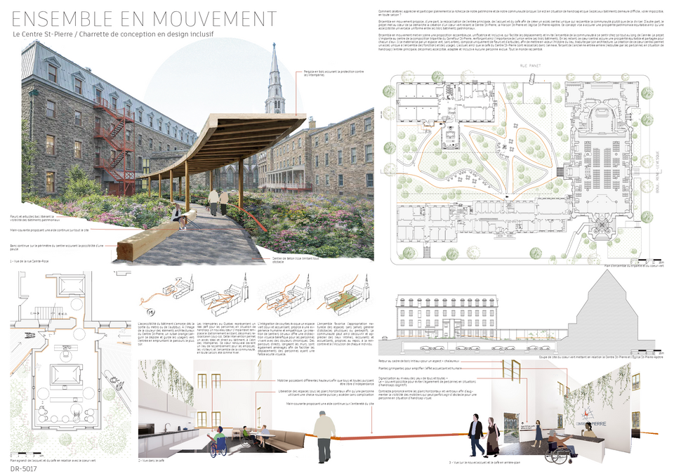 Les membres du jury observent que ce projet «se distingue par une approche poétique et paysagère forte, proposant une transformation radicale du site par le verdissement du stationnement et la création d’un parcours sensible menant au Centre St-Pierre.»