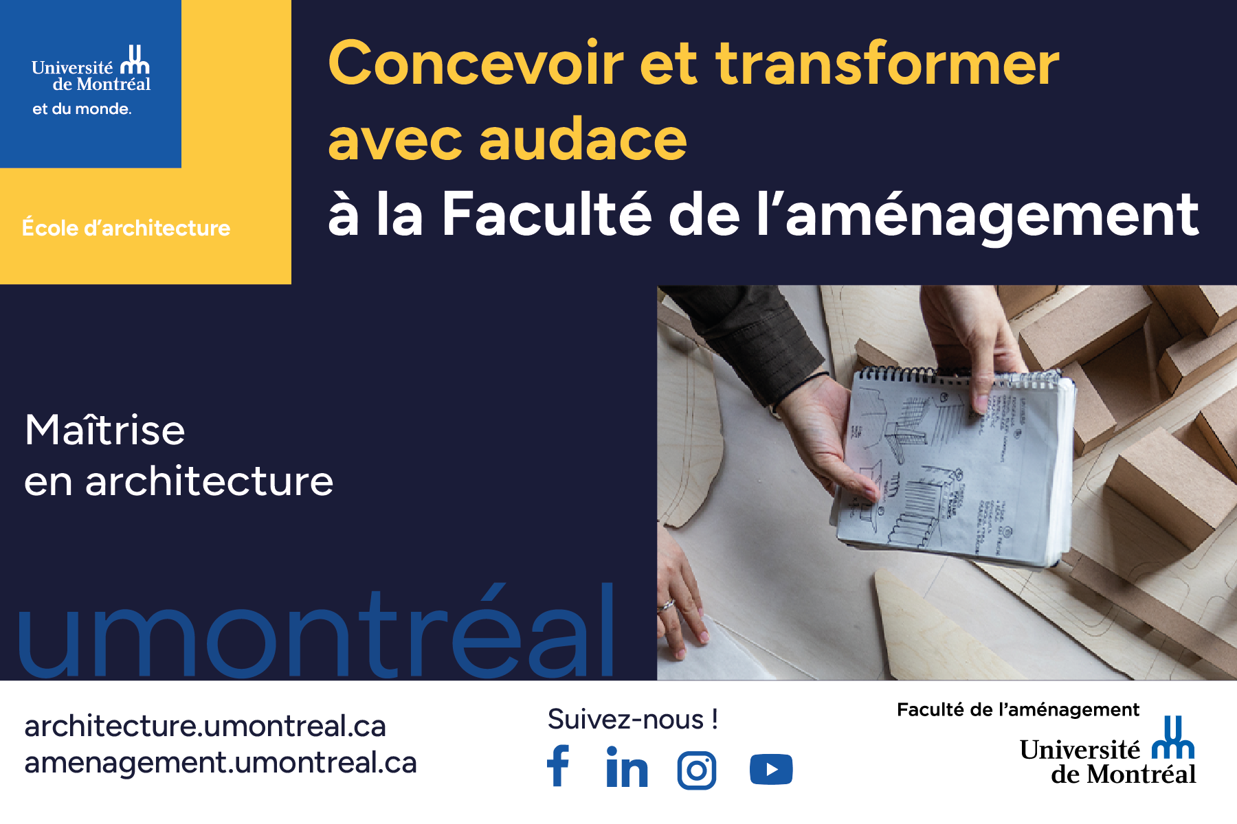 Si vous possédez une formation de 1er cycle en architecture ou en design de l’environnement et que vous souhaitez accéder à l’exercice de la profession d’architecte, cette maîtrise immersive est pour vous.